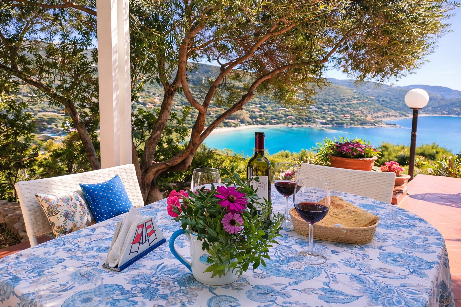 Pranzo all'aperto con vista sul mare